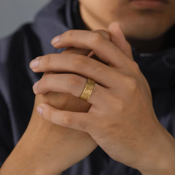 …un segno che solo chi sente la chiamata degli dèi osa indossare.Questo anello dorato non è solo elegante: è un talismano.