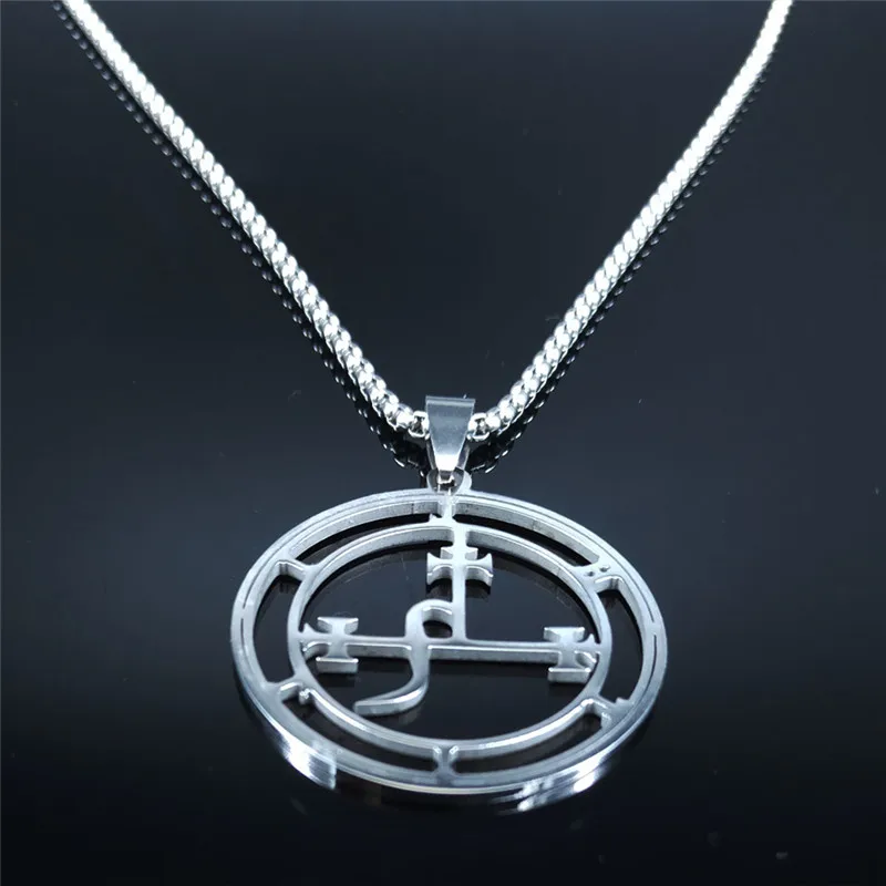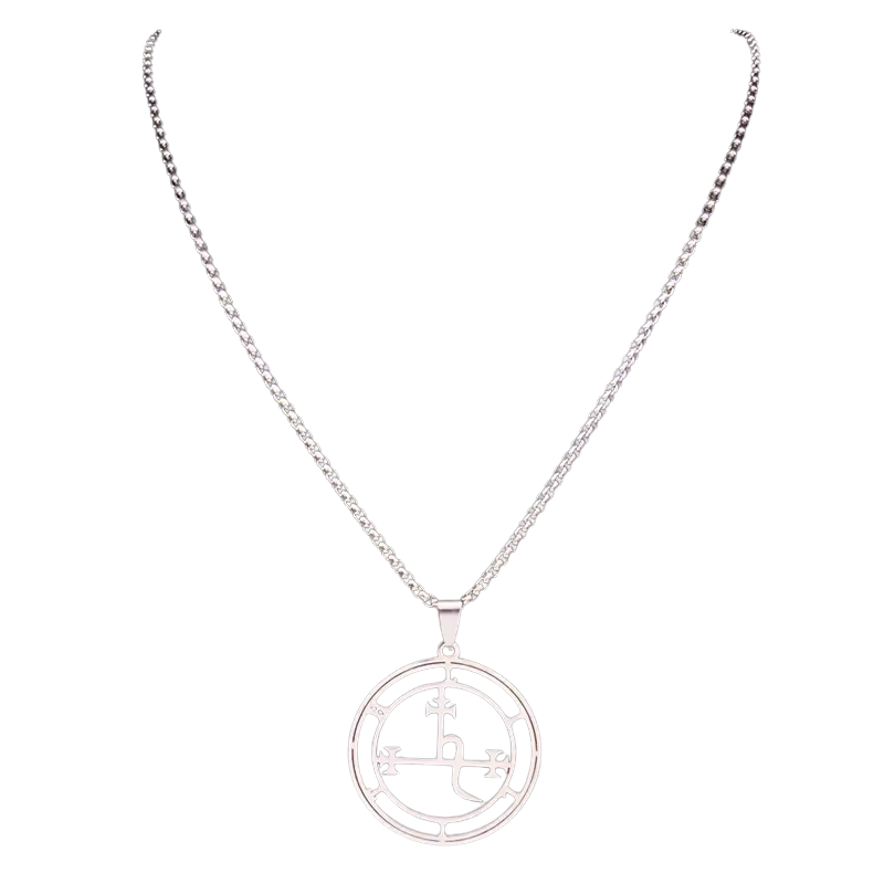 Scopri la collana sigillo Lucifuge Rofocale: un gioiello esoterico dal design geometrico, realizzato in acciaio inossidabile color argento, resistente e anallergico.