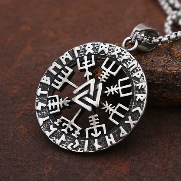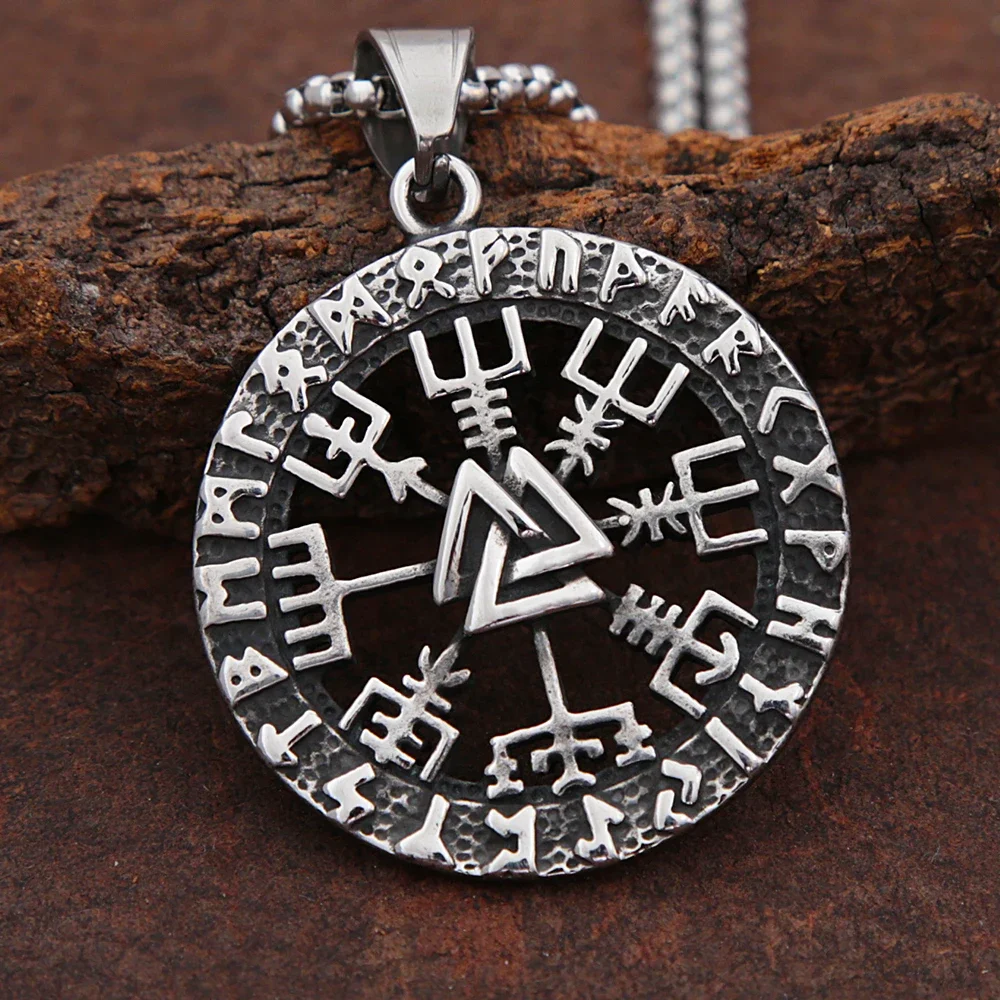 La Collana Valknut unisce la forza delle antiche rune norrene al potere del simbolo sacro legato a Odino. Tre triangoli intrecciati, incisi su una bussola mistica: protezione, rinascita, direzione.Realizzata in acciaio inossidabile di alta qualità, questa collana è più di un gioiello. È un talismano.